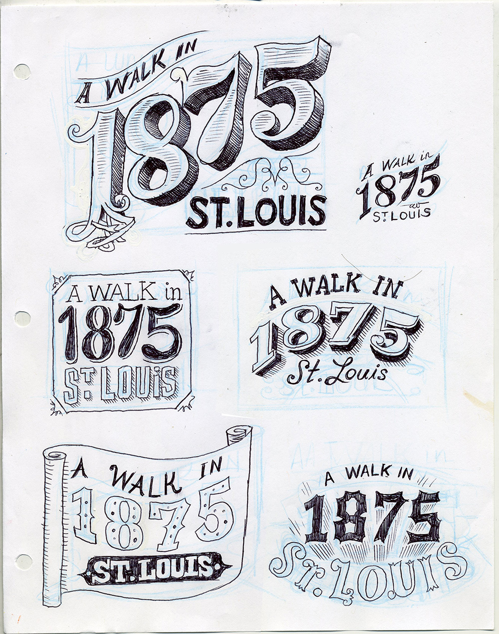 A Walk in 1875 St. Louis, and am gonna start posting sketches, visual research and behind-the-scenes in-progress images from some of the stuff I worked on. First: the logo.
