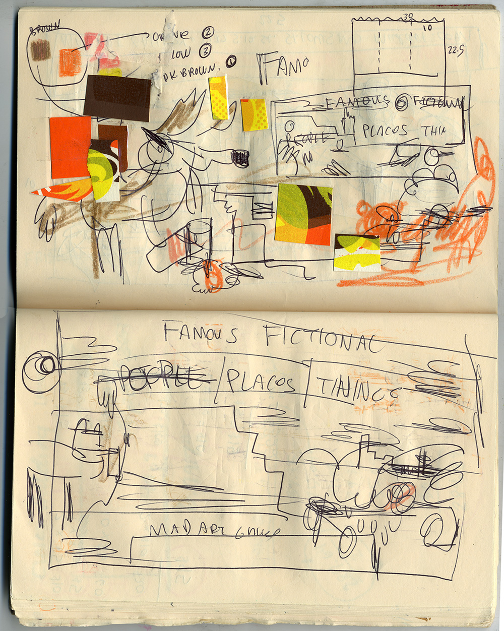 Thanks to everyone who came out to the Famous Fictional: Places & Things opening last Friday night at Mad Art Gallery. It was really fun. Pic's of all the amazing art to come soon! Here's some nitty-gritty behind the poster. Sketches & Ink tests: